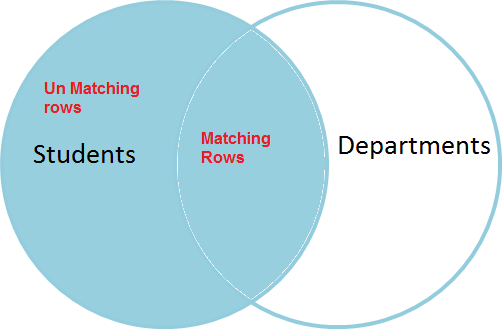 The INNER JOIN produces the records from both – the students and the department’s tables that match the condition which is “Students.DepartmentId = Departments.DepartmentId “. The unmatched rows will be ignored and not included in the result.